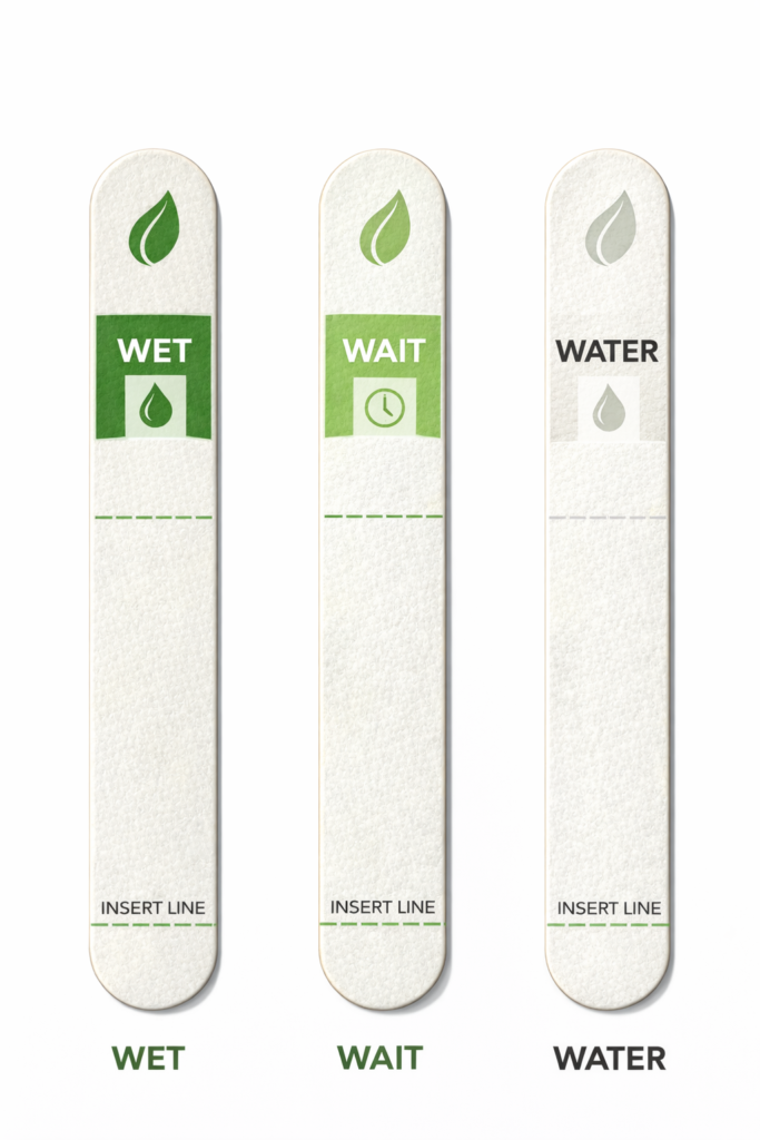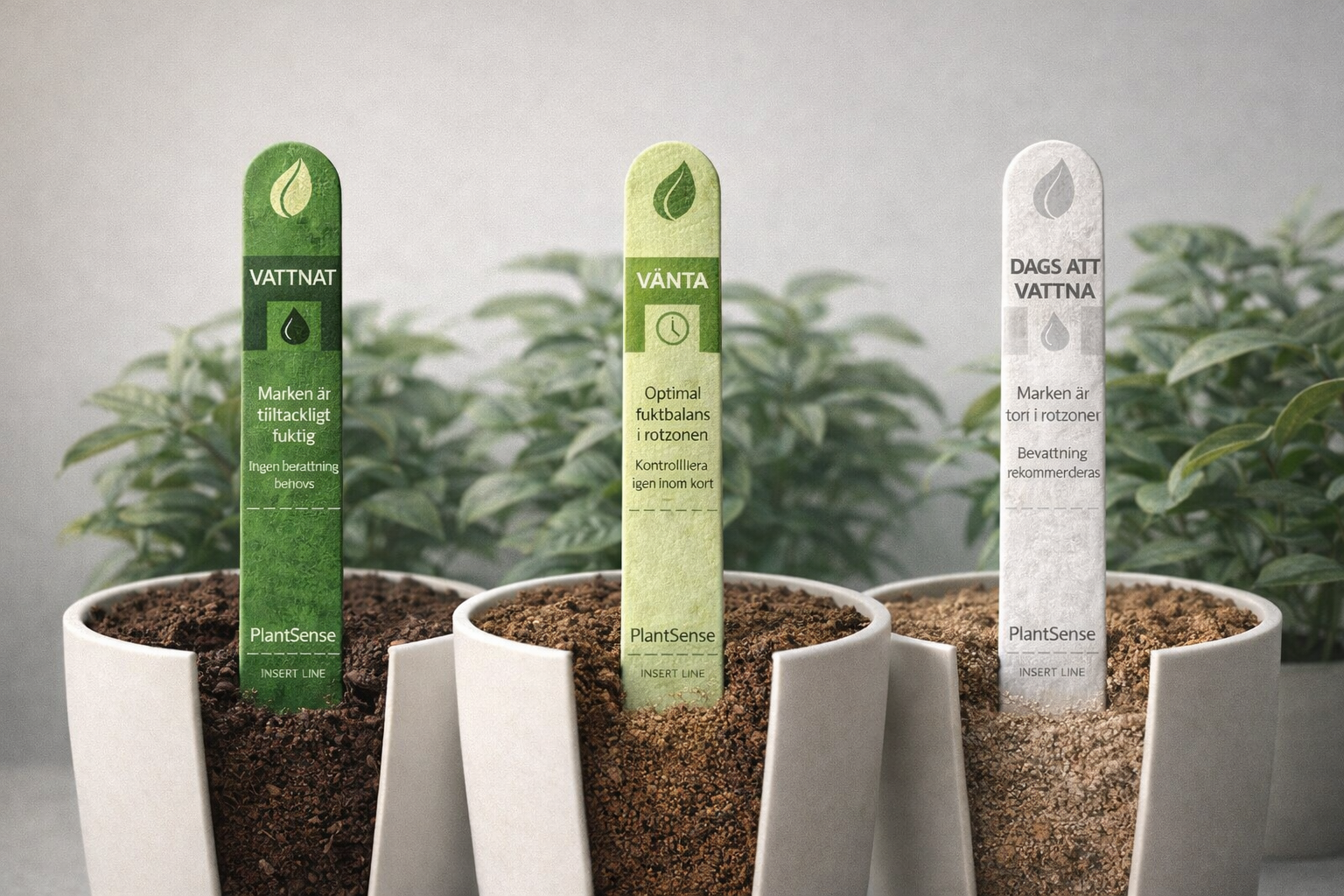 PlantSense Stick™ är Skandinaviens första hydrokromiska, analoga fuktindikator som tydligt visar när dina växter behöver vatten. Med en passiv kapillär fysik utan elektronik ger den enkla signaler – WET, WAIT och WATER – för optimal bevattning.