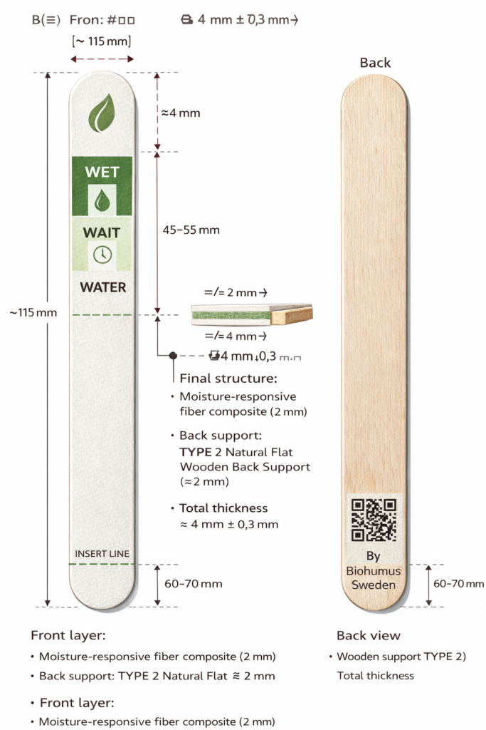 Vår biologiskt nedbrytbara indikator eliminerar behovet av elektronik och bidrar till en mer hållbar växtvård.